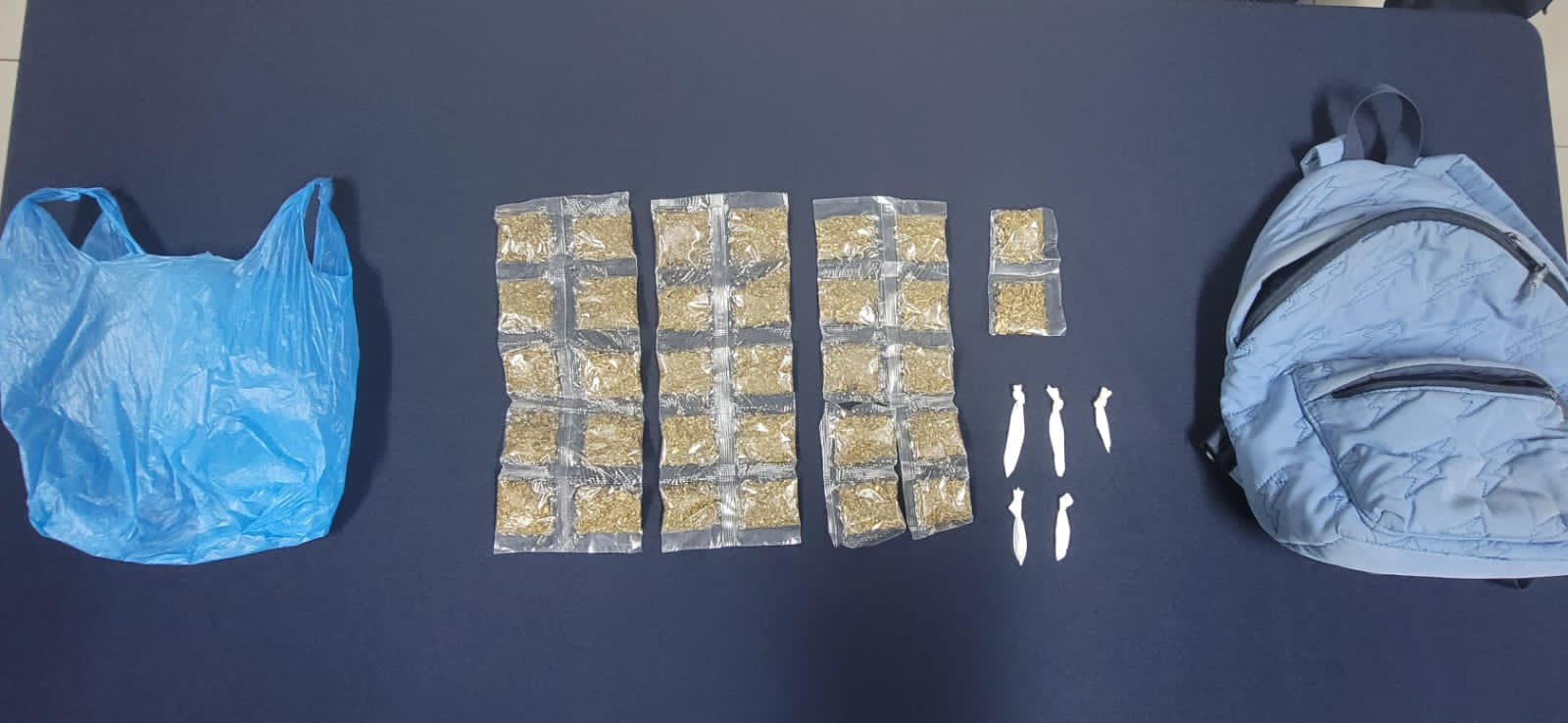A alias «Pistola» como evidencia del delito se le decomisaron varios envoltorios plásticos transparentes conteniendo en su interior piedras de supuesto crack y también hierba seca supuesta marihuana