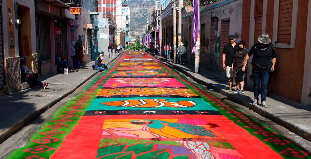 Los equipos de la Alcaldía Municipal del Distrito Central trabajan para que los capitalinos y turistas puedan admirar las coloridas alfombras que se elaboran para adornar las calles con motivo de la Semana Santa. Las bellas estampas multicolores son elaboradas en el centro histórico de Tegucigalpa, donde la Iglesia Católica escenifica las procesiones como parte…