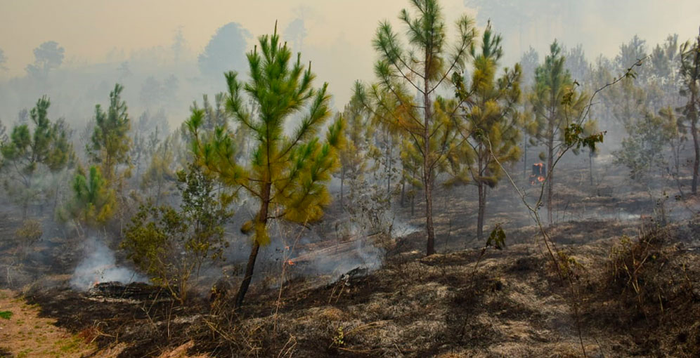 En cuestión de horas, el candente fuego quemó varias hectáreas de árboles de pino, roble y maleza que está cerca de la zona de amortiguamiento de “La Tigra”.