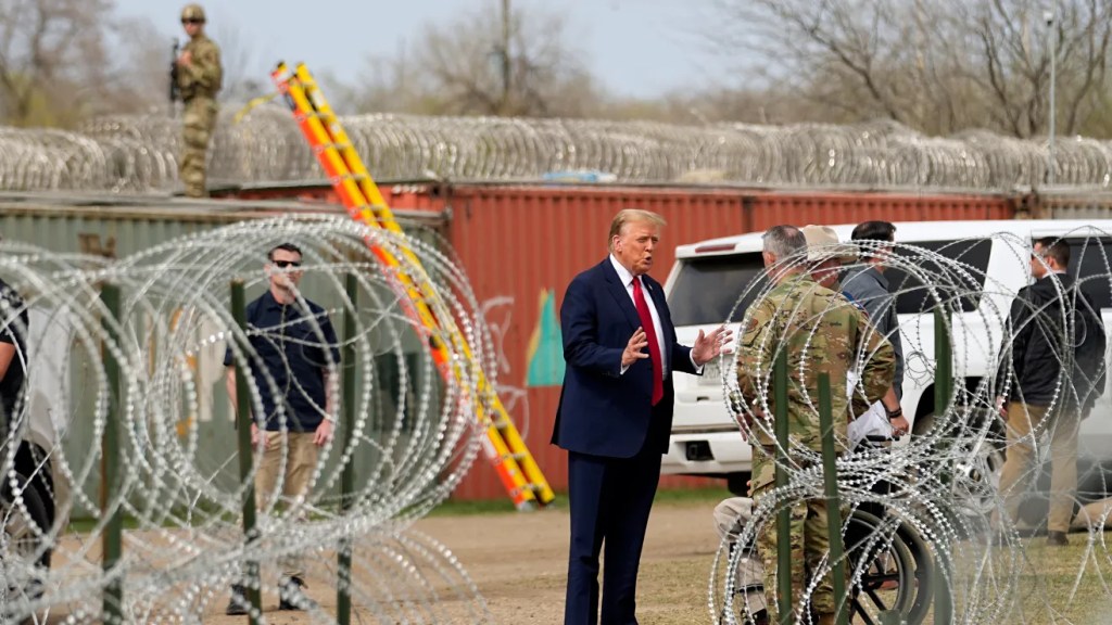 Trump llamó “terroristas” a migrantes y culpó a Biden de una “invasión” en su visita a la frontera