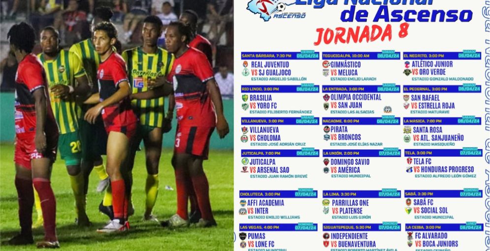 La actividad de la octava jornada del Torneo Clausura 2023-2024 de la Liga de Ascenso inicia este viernes a las 7 p.m, con el duelo entre Real Juventud y San Juan Gualaco en el estado Argelio Sabillón.