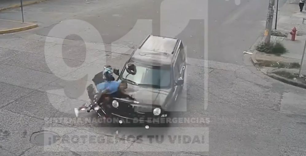 El accidente, captado en tiempo real, muestra el momento en que ambos vehículos chocan, subrayando la necesidad de una mayor precaución por parte de conductores y motociclistas.