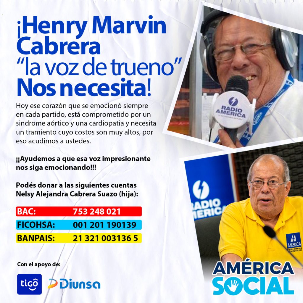 En los momentos difíciles aparecen los buenos amigos y en esta ocasión esa gran voz deportiva de Radio América, Henry Marvin Cabrera, necesita ayuda para mantener su salud y salvar su vida en un partido largo y complicado que está afrontando.