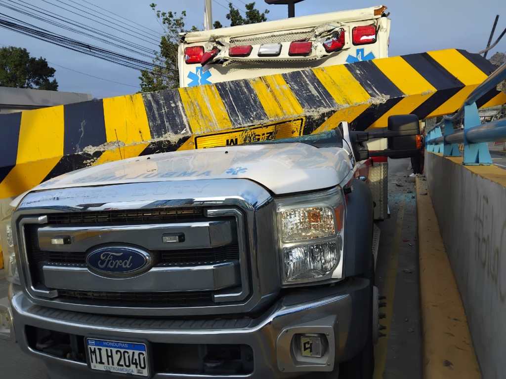 Una ambulancia colisionó este viernes con una viga indicadora de altura colocada en el túnel que del bulevar Juan Pablo II, conduce hacia la Colonia Tepeyac, en la capital de Honduras, Tegucigalpa.