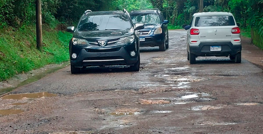 Las lluvias copiosas de las últimas semanas han provocado enormes pozas, deslaves e infinidad de baches a lo largo del trayecto de unos 13 kilómetros, a partir de la aldea de El Hatillo, con excepción de algunos tramos pavimentados.