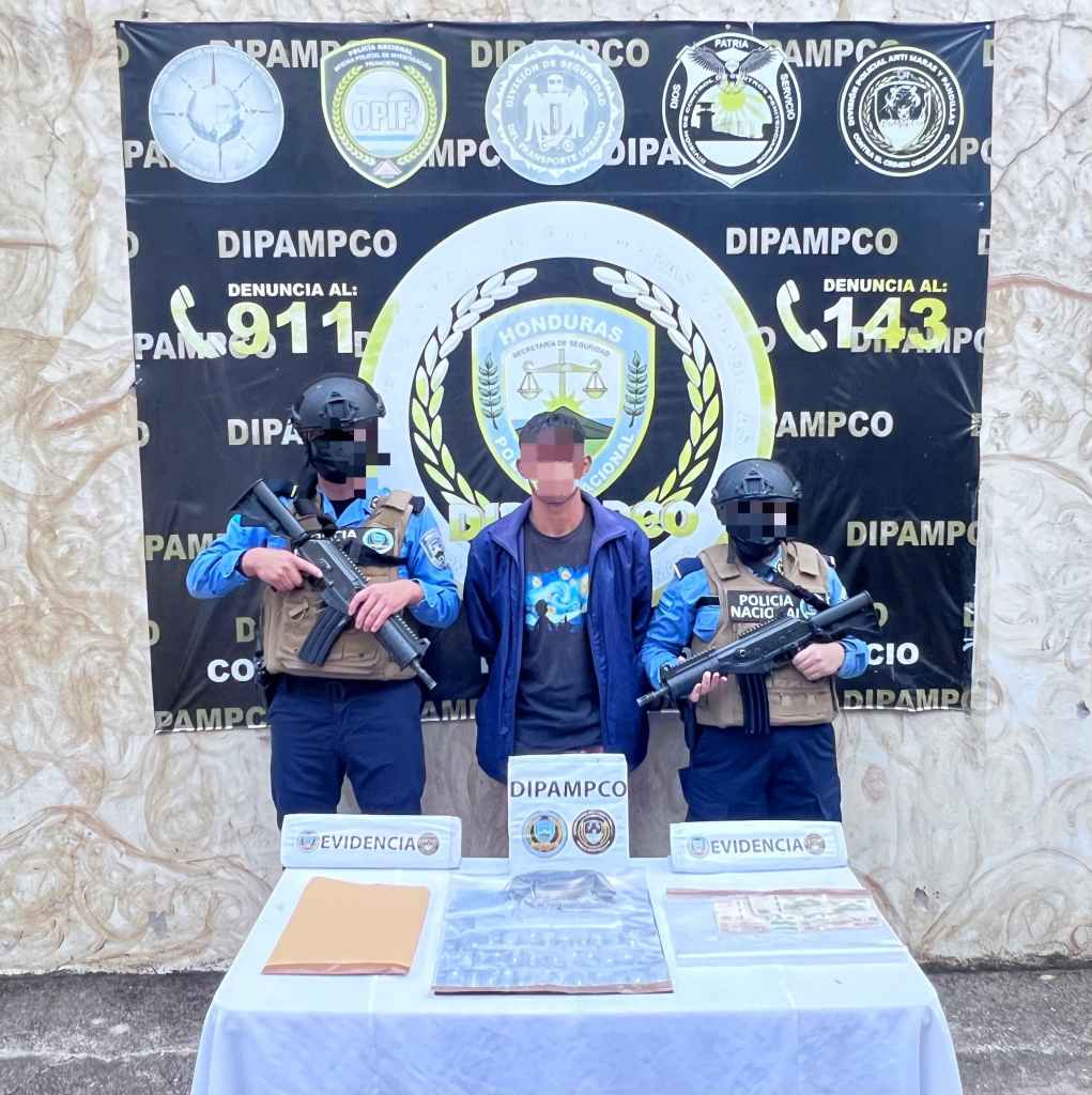 Mediante acciones de inteligencia, funcionarios de la Dirección Policial Anti Maras y Pandillas Contra el Crimen Organizado (DIPAMPCO), lograron la captura de un ciudadano, vinculado a una organización criminal, en la colonia Boquin, de la ciudad de Comayagua, por tráfico de drogas. Se trata alias «Chocho» de 22 años, quien producto de las investigaciones se…