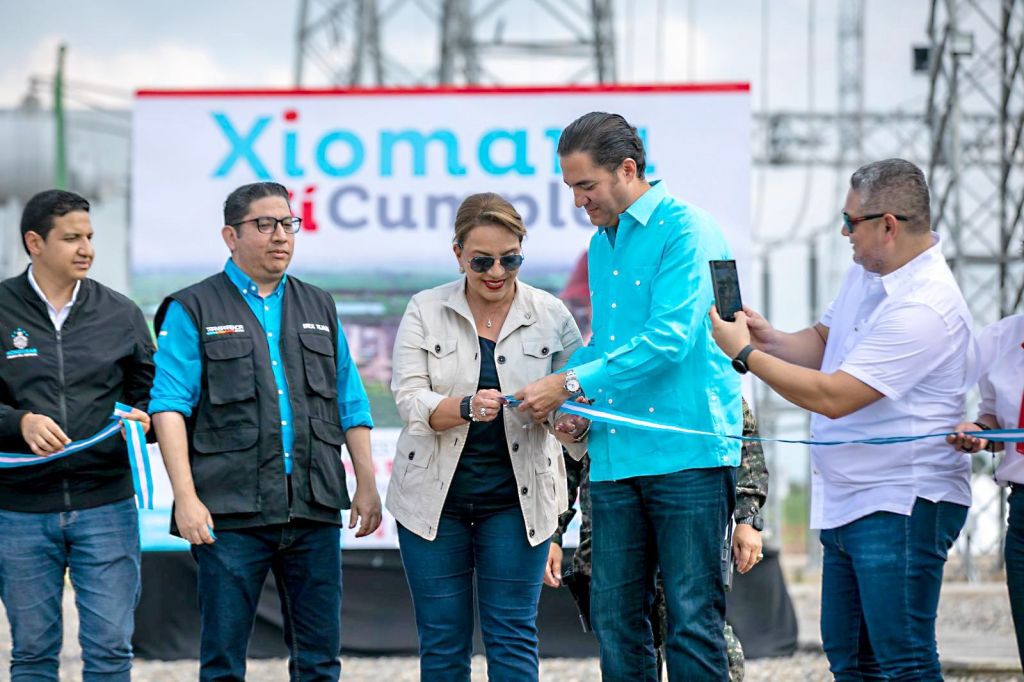 La titular del Ejecutivo se trasladó a Villanueva, Cortés- donde se hizo la inauguración acompañada del secretario privado Héctor Manuel Zelaya y de los ministros de Energía, Erick Tejada y de Recursos Naturales y Ambiente (Serna) Lucky Medina, respectivamente.
