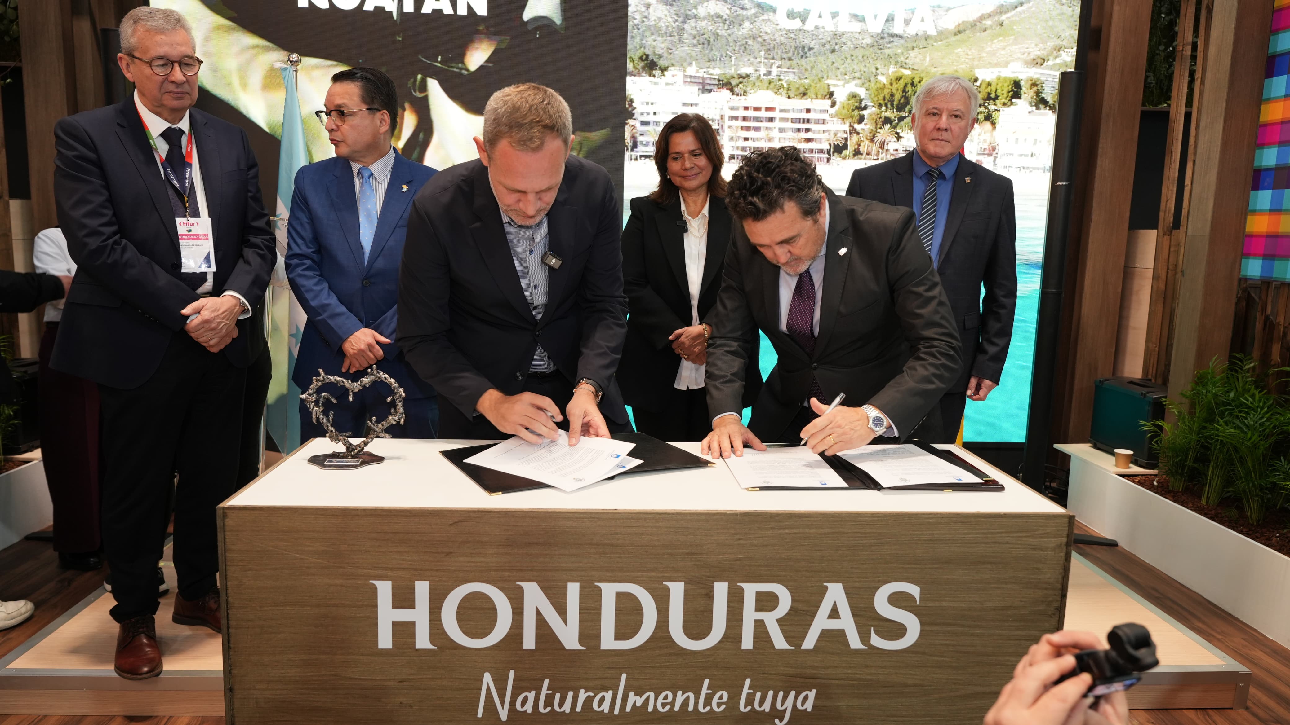Durante la firma también estuvieron presentes la ministra de Turismo, Yadira Gómez; la vicealcaldesa de Roatán, Trudy Hilton y el embajador de Honduras en España, Marlon Brevé.
