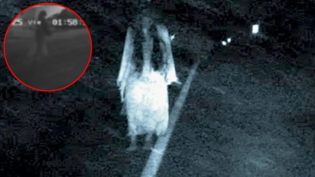 En las imágenes captadas por una cámara de seguridad en la madrugada se aprecia a una mujer vestida de blanco caminando en medio de la calle.