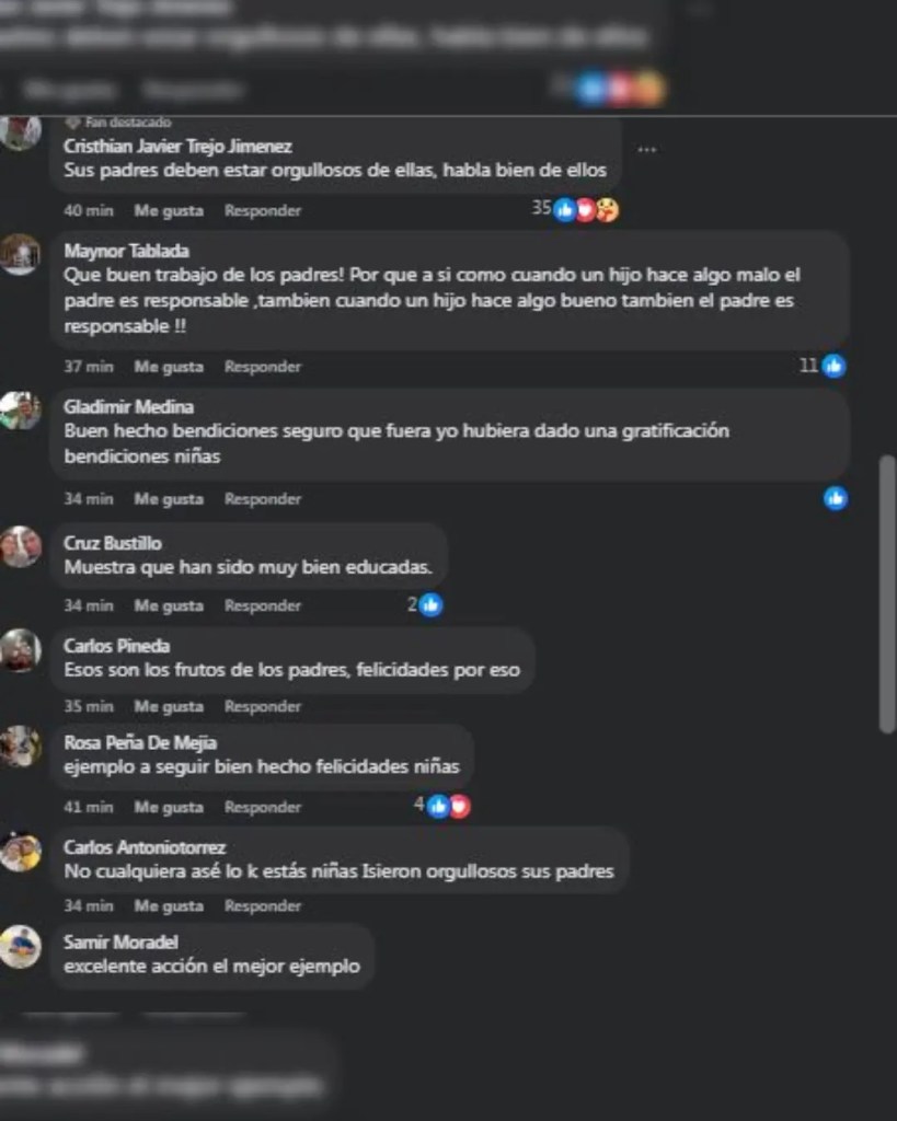 La acción de las adolescentes ha generado varios comentarios positivos en redes sociales, donde cientos de personas las han felicitado, y en especial , a sus familias por inculcarles valores sólidos desde el casa.