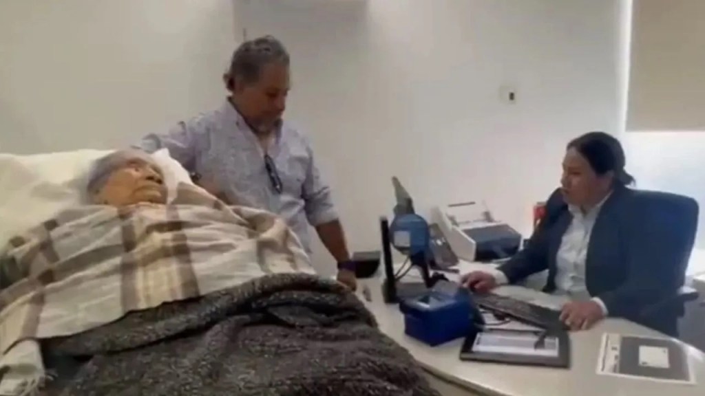 El suceso fue expuesto por el periodista mexicano Óscar Rodríguez, quien documentó el momento en que Fidelia Vásquez Nuño,, fue trasladada hasta las puertas del banco por su hijo Gilberto Ayala.