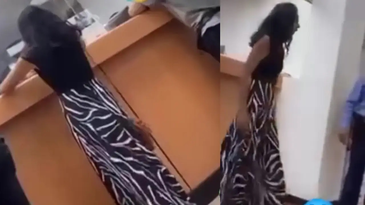 En las imágenes se puede observa a la mujer siendo atendida en una ventanilla, donde una cajera le informa que su cuenta no dispone del dinero que exige retirar.